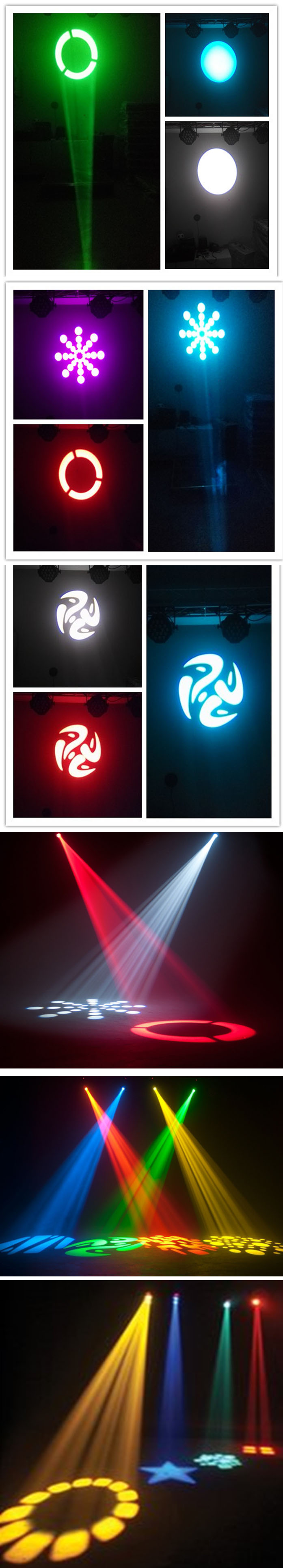 Effect of rotating disk pattern pattern + open rainbow flow, the flow of the rainbow pattern jitter color 7 colors + effect stroboscopic variable electronic strobe dimmer variable electronic dimming (0% and 100%)