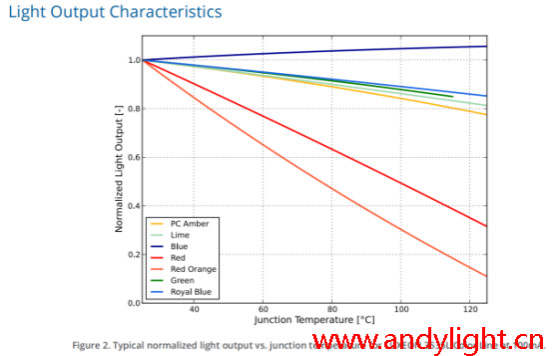 5、LED光輸出特性與溫度